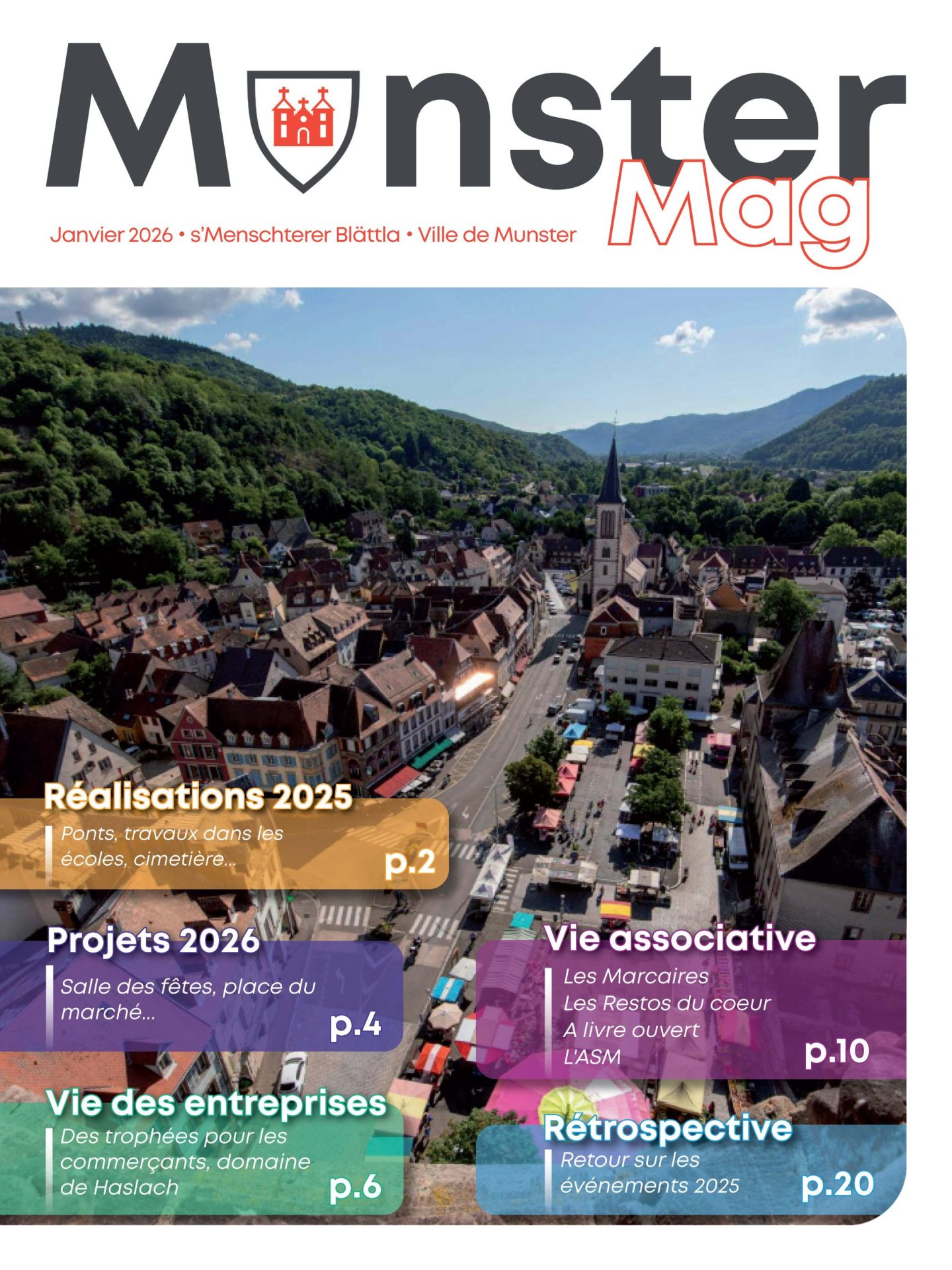Découvrez le bulletin municipal du mois de janvier 2026 avec l’édito du Maire, les réalisations 2025, les projets 2026, la présentation d’associations munstériennes etc.