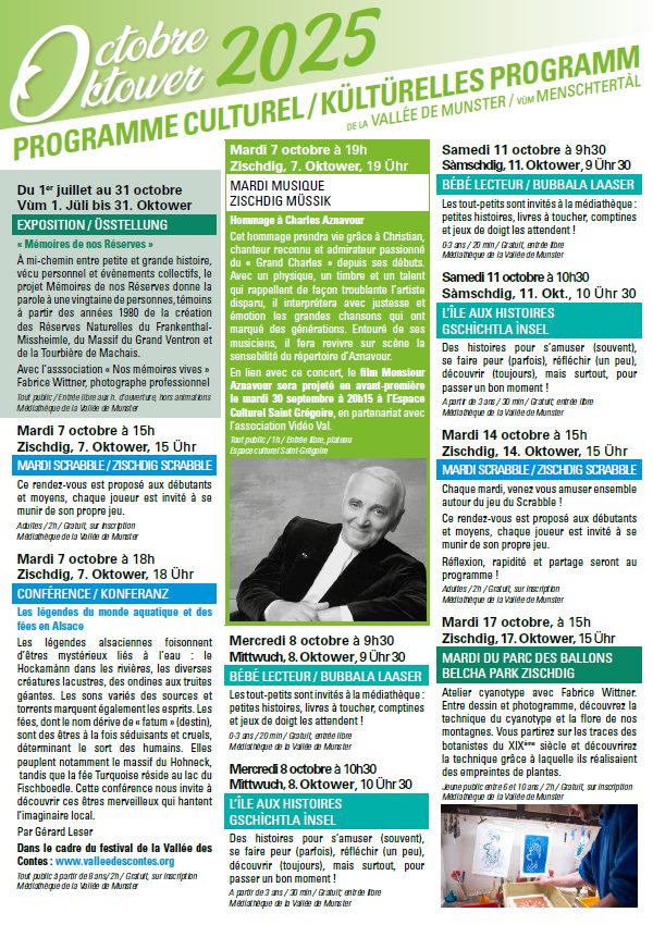Programme culturel de la Vallée de Munster pour le mois d’octobre 2025