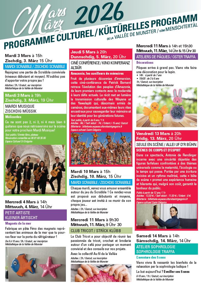 Programme culturel de la Vallée de Munster pour le mois de janvier 2026
