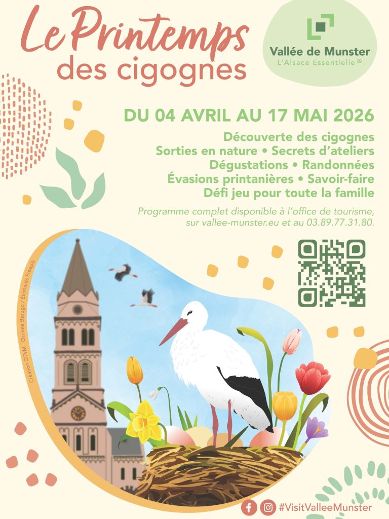 Et ce n’est pas tout ! Le Printemps des Cigognes, c’est aussi l’occasion de pousser les portes de nos savoir-faire locaux : saboterie, tournage sur bois, tissage traditionnel, visite de brasserie… autant d’expériences authentiques pour découvrir l’âme de la vallée.
